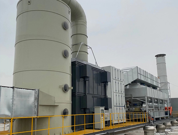 高壓靜電裝置-干式過濾-吸脫附系統(tǒng)-催化燃燒-升溫節(jié)能系統(tǒng)-風(fēng)機-控制系統(tǒng)